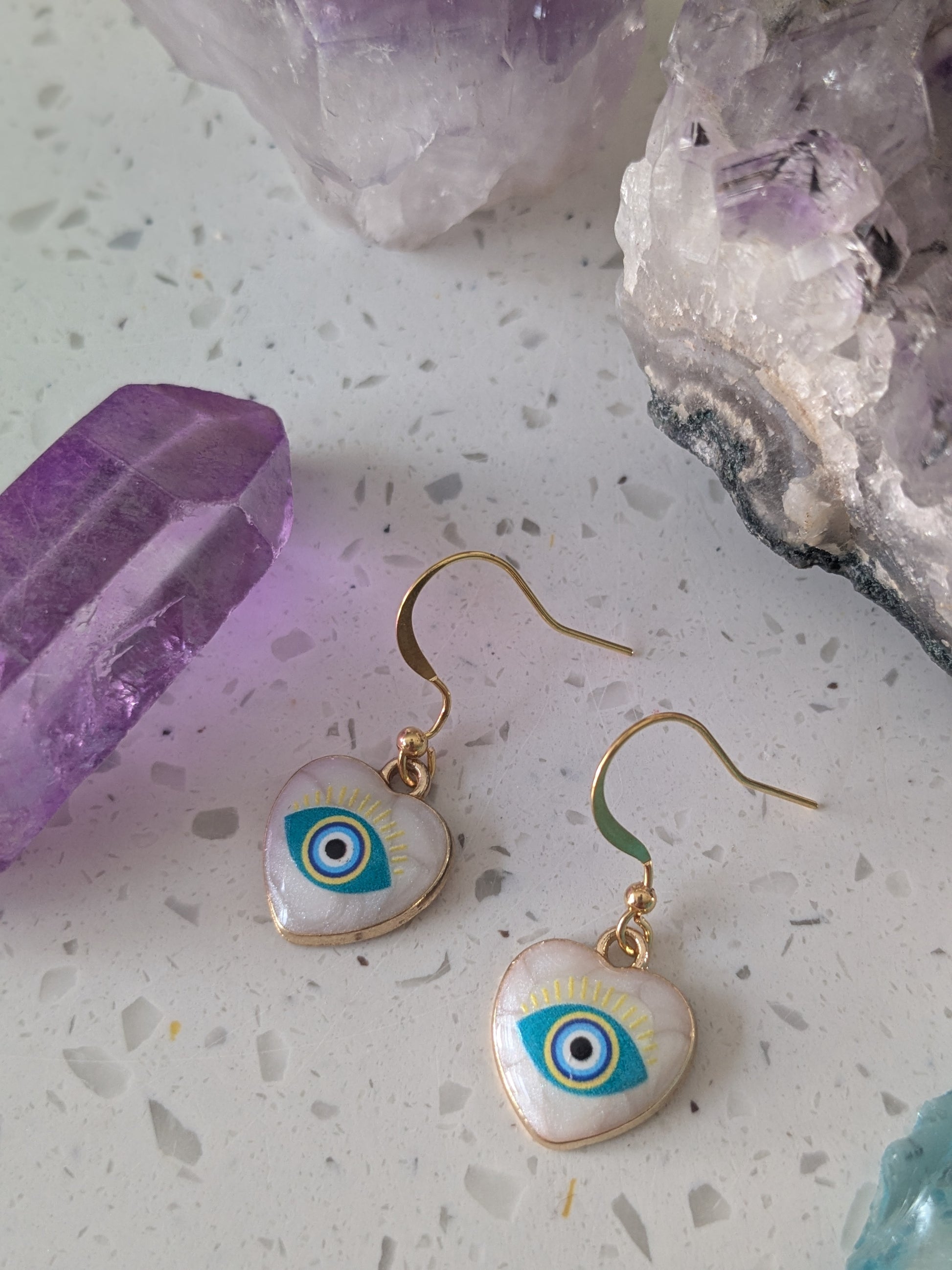 These Evil Eye gold earrings from Looking Out offer a stylish and trendy design that adds a touch of elegance to any outfit. Made with high-quality materials, they provide a sophisticated look while also protecting against negative energies. Perfect for any fashion-forward individual looking to enhance their wardrobe with powerful style and protection.